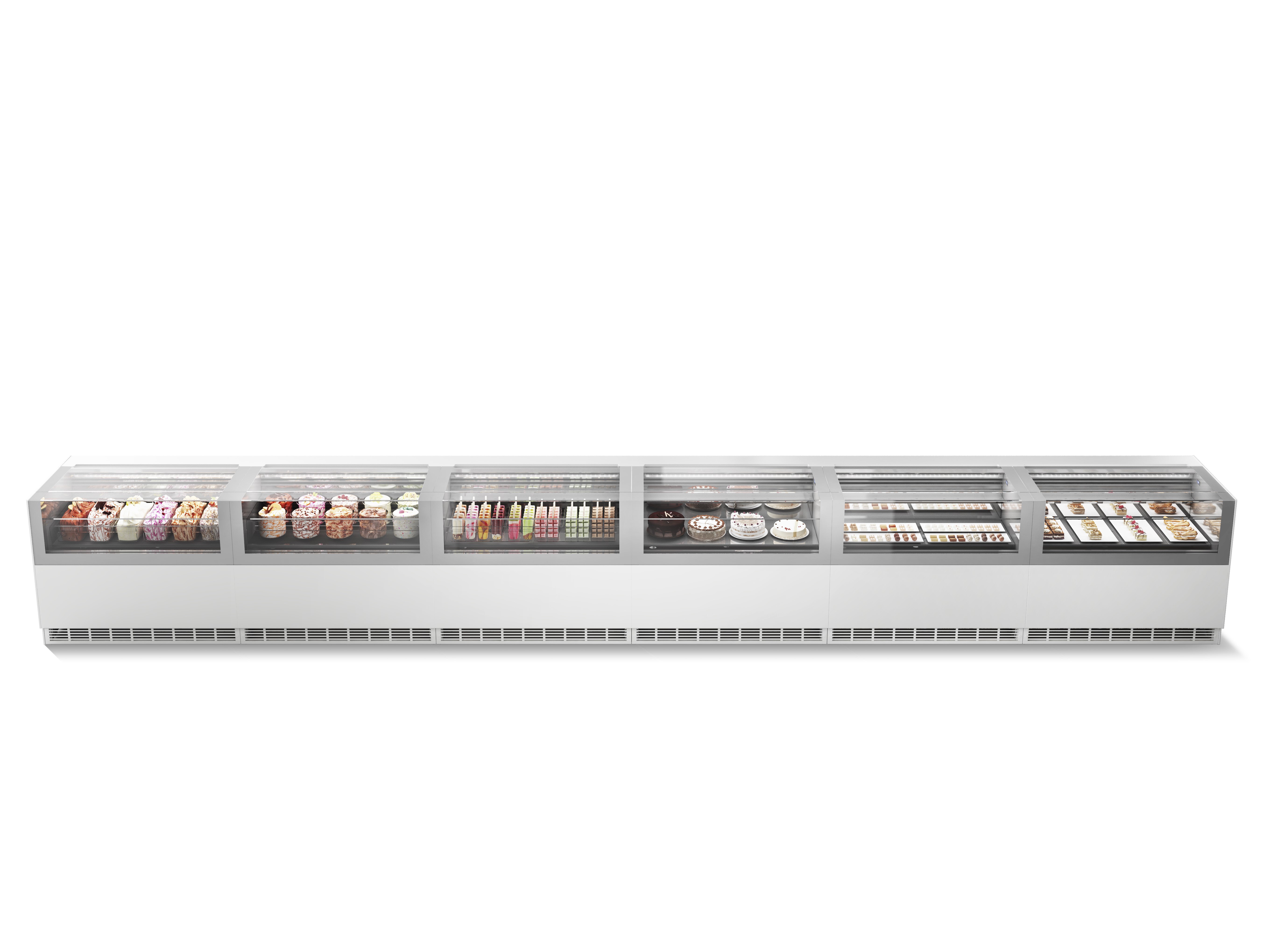 Mit der Dual-Temperature-Funktion (optional) kann die Vitrine einfach von Eiscreme auf Kuchen umgestellt werden und umgekehrt. So erhalten Sie einen multifunktionalen Raum mit einem einzigen Produkt: die Möglichkeit, das Angebot und die Gestaltung Ihres Raumes saisonal zu variieren.